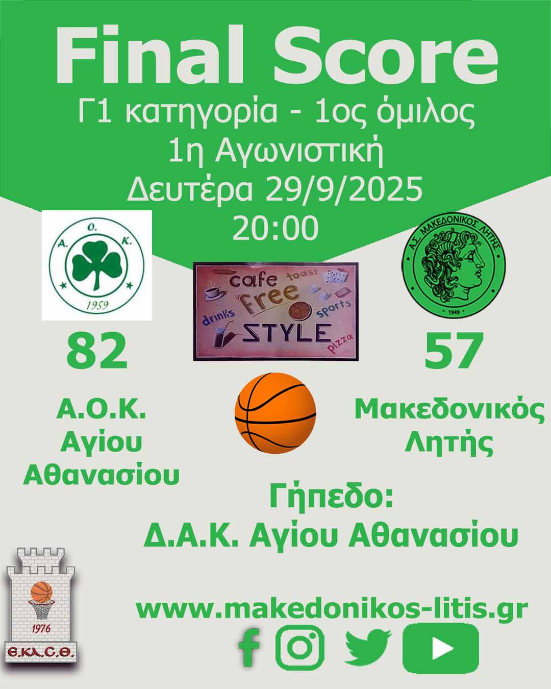 🏀Την ήττα γνώρισε η ομάδα μας στην πρεμιέρα του πρωταθλήματος