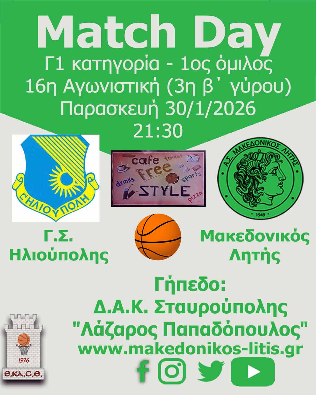 Η ομάδα μας φιλοξενείται από τον Γ.Σ. Ηλιούπολης και θέλουμε την νίκη για να παραμείνουμε στις πρώτες θέσεις της βαθμολογίας.