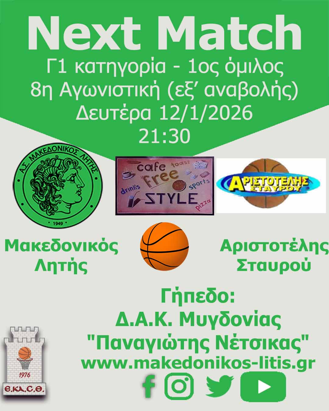 Πρώτος αγώνας για το 2026 την Δευτέρα 12/1 στην έδρα μας. Η ομάδα μας φιλοξενεί τον Αριστοτέλη Σταυρού και θέλει να ξεκινήσει με το δεξί τις αγωνιστικές υποχρεώσεις για το νέο έτος.