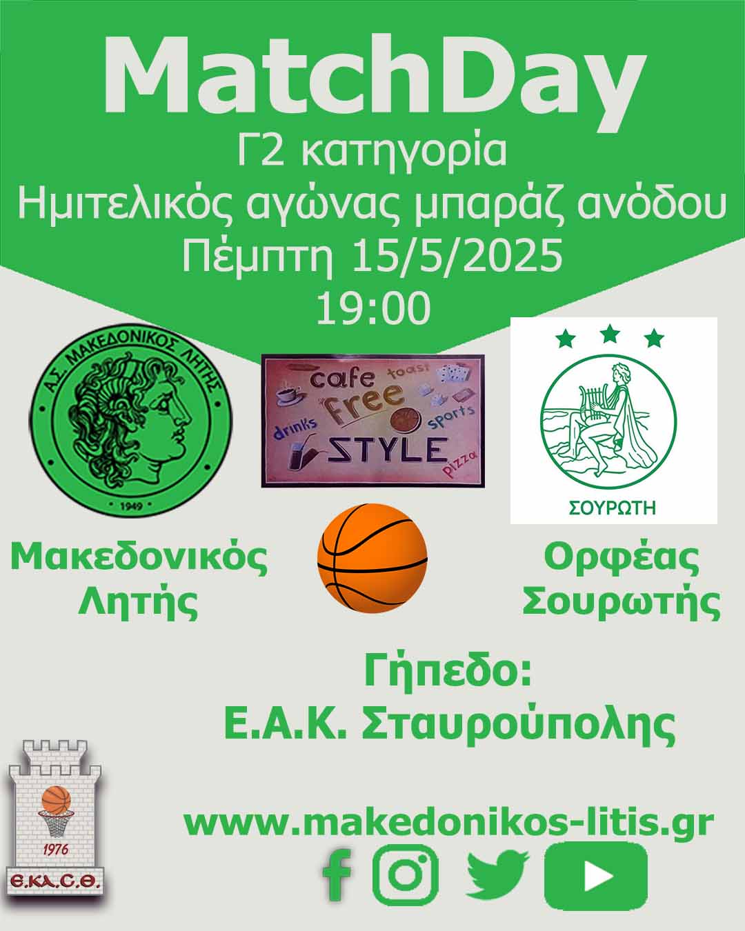 Τον πιο κρίσιμο αγώνα της φετινής αγωνιστικής περιόδου δίνει η ομάδα μας την Πέμπτη 15/5. Στο ουδέτερο γήπεδο της Σταυρούπολης αντιμετωπίζει τον Ορφέα Σουρωτής στον ημιτελικό αγώνα για τα μπαράζ ανόδου.