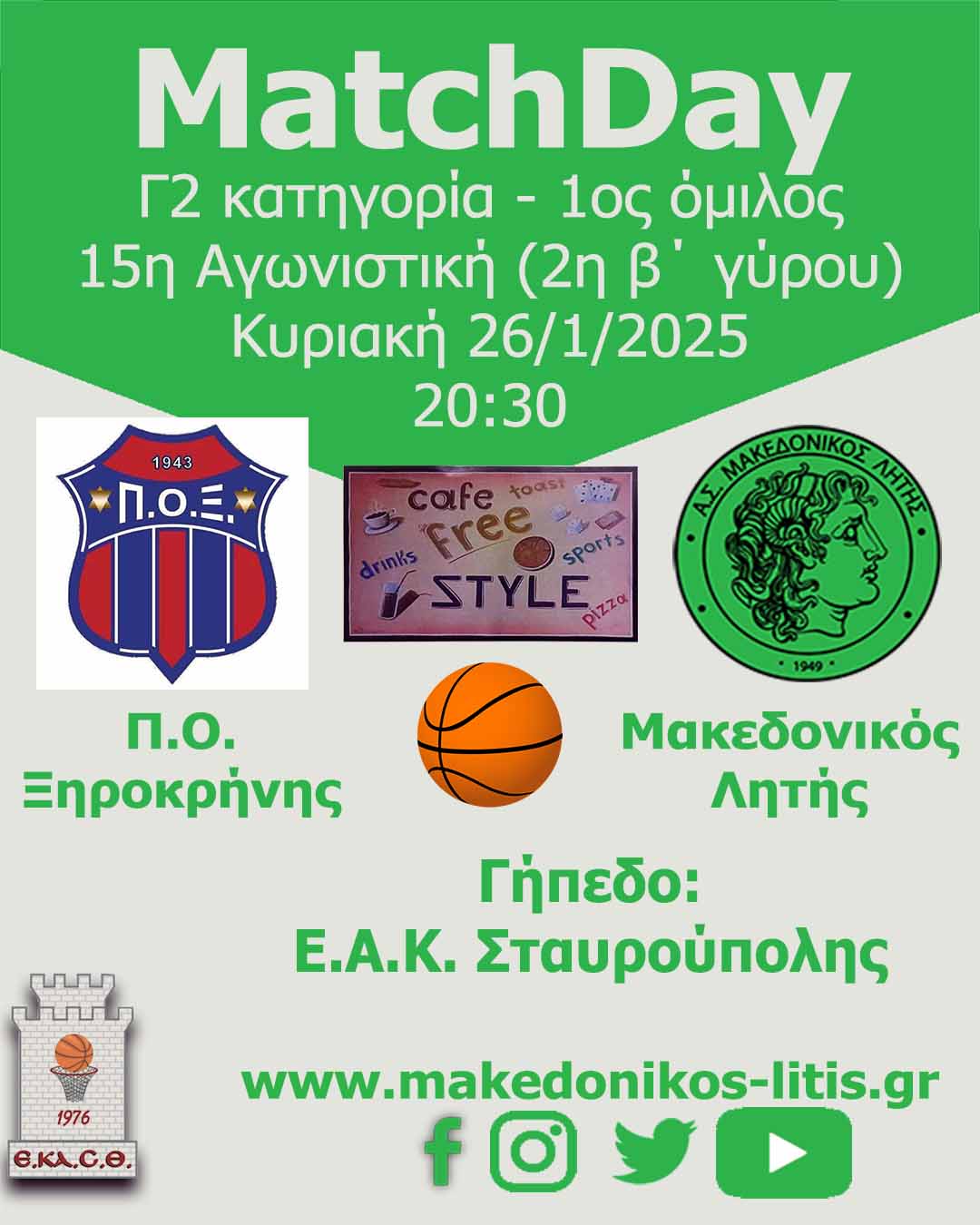 Δέκατη πέμπτη αγωνιστική του πρωταθλήματος και παίζουμε εκτός έδρας με τον Π.Ο. Ξηροκρήνης. Στόχος η νίκη και η παραμονή στην πρώτη θέση της βαθμολογίας.