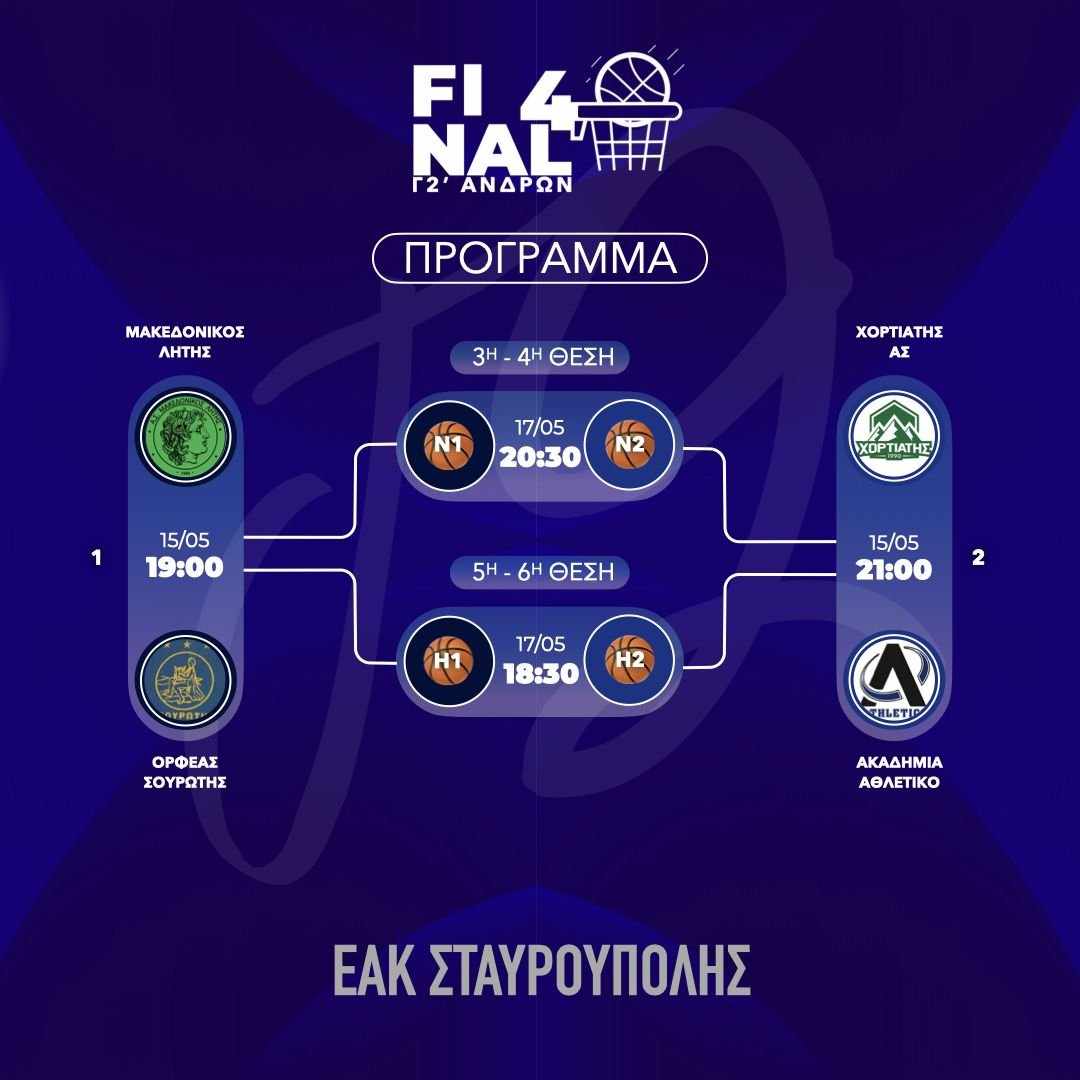 🏀 Ξεκινάει το Final 4 της Γ2 κατηγορίας Ε.ΚΑ.Σ.Θ. από το οποίο θα προκύψει η ομάδα που θα κατακτήσει την 3η προνομιούχο θέση του πρωταθλήματος, η οποία οδηγεί στην Γ1 κατηγορία, καθώς επίσης θα διαμορφωθεί η κατάταξη των θέσεων 3-6 της Γ2 κατηγορίας.