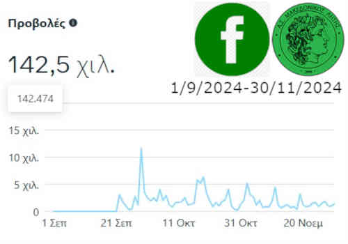 Η σελίδα μας μετράει συνολικά 1.443 ακολούθους, ενώ κατά το χρονικό διάστημα 1/9/2024 - 30/11/2024 είχε 142.474(1) προβολές.