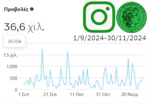 Τα ίδια και στο Instagram…η μία ανάρτηση πίσω από την άλλη σχετικά με τους αγώνες των αμάδων μας. 585 οι ακόλουθοί μας και 36.554(2) οι προβολές στο προφίλ μας κατά το χρονικό διάστημα 1/9/2024 - 30/11/2024.