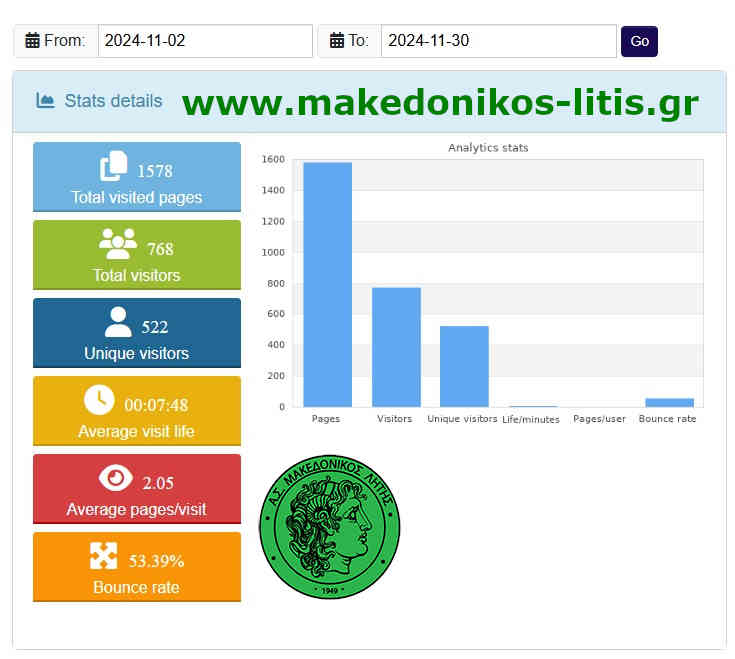 Από 2/11/2024 έχουμε και διαθέσιμα στοιχεία σχετικά με την επισκεψιμότητα της ιστοσελίδας μας...