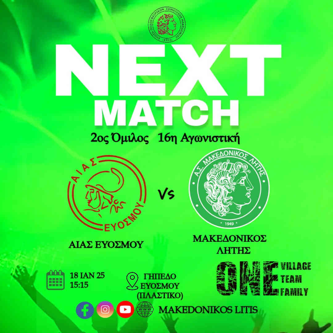 Το Σάββατο 18/1, η ομάδα μας φιλοξενείται από τον Αία Ευόσμου για την 16η αγωνιστική του πρωταθλήματος