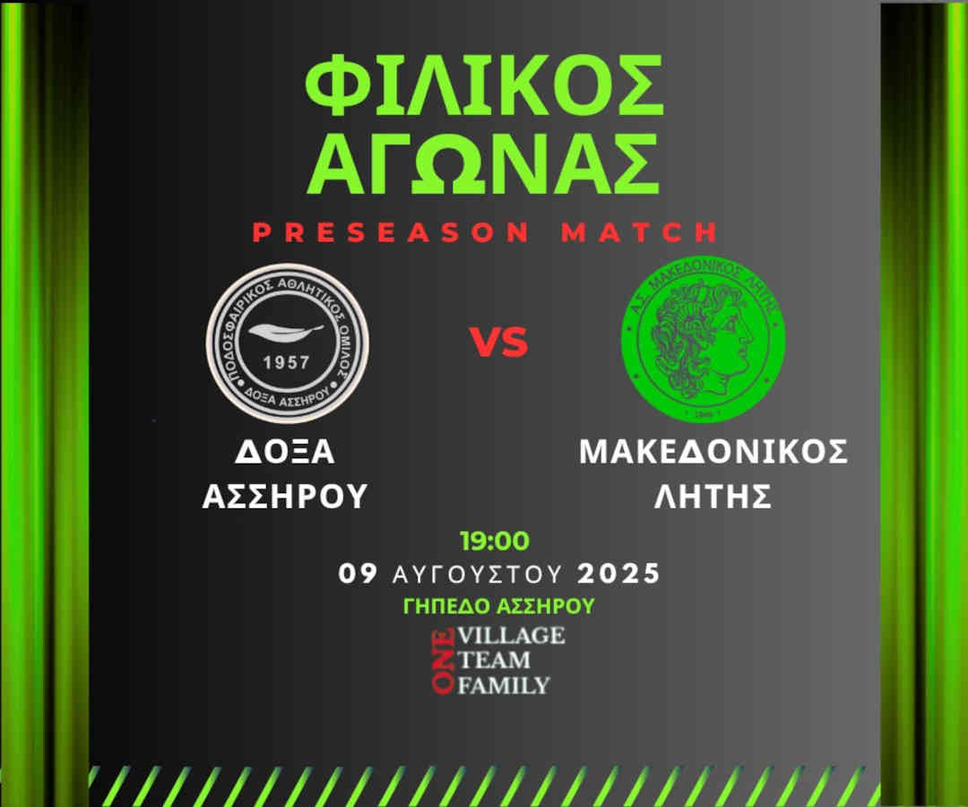 Πρώτος φιλικός αγώνας προετοιμασίας για την ομάδα μας με αντίπαλο την Δόξα Ασσήρου αύριο Σάββατο 9/8 στις 19:00
