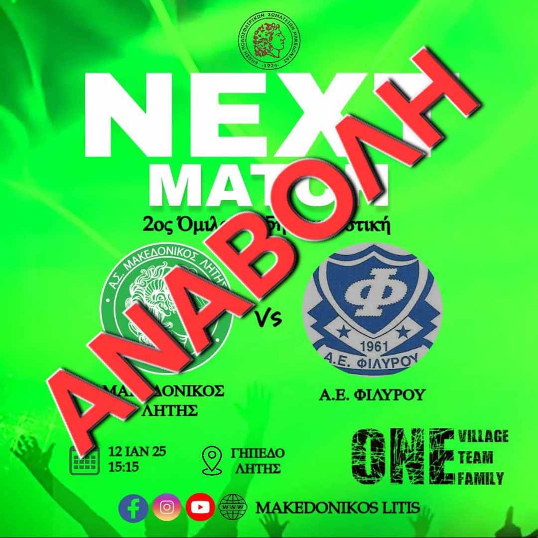 Μακεδονικός Λητής - Α.Ε. Φιλύρου⚽️ Το σημερινό παιχνίδι της ομάδας μας αναβάλλεται λόγω έντονων καιρικών φαινομένων ❄️❄️❄️