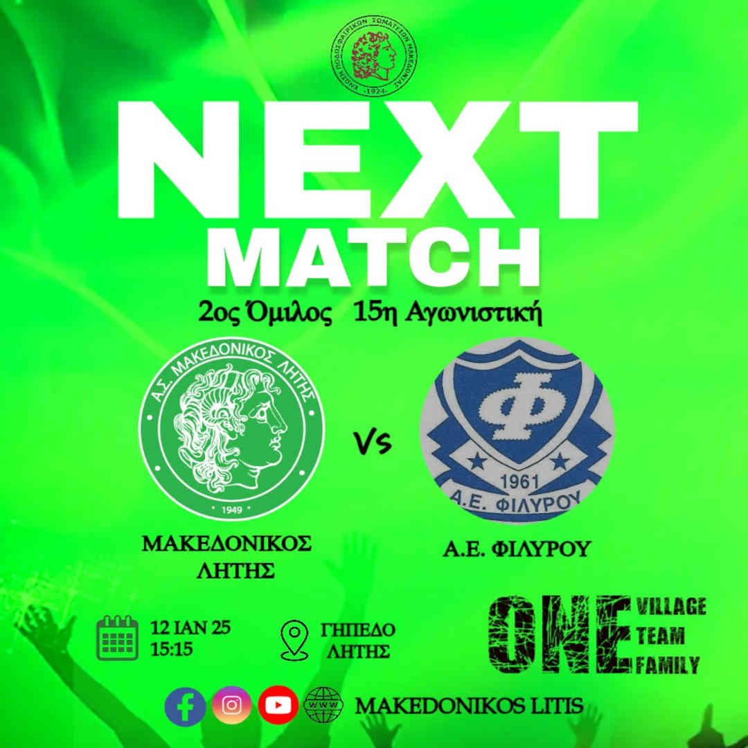 🔥MATCH DAY🔥 🆚️ Α.Ε. Φιλύρου 🏆 Α΄ Κατηγορία Ε.Π.Σ.Μ.- 2ος όμιλος - 15η αγωνιστική 🏟 Γήπεδο Λητής ⏱ 15:15