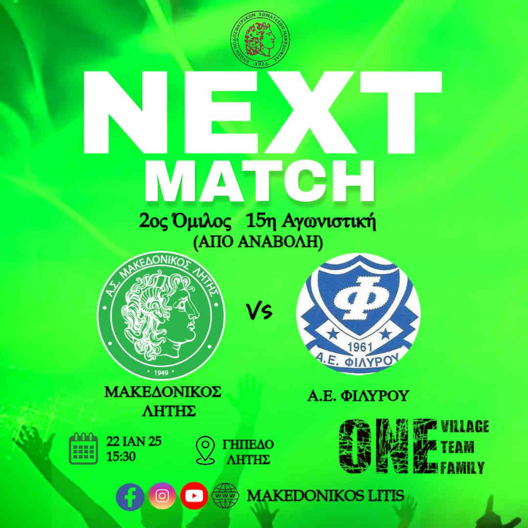Την Τετάρτη 22/1, η ομάδα μας φιλοξενεί την Α.Ε. Φιλύρου για τον εξ αναβολής αγώνα της 15ης αγωνιστικής του πρωταθλήματος