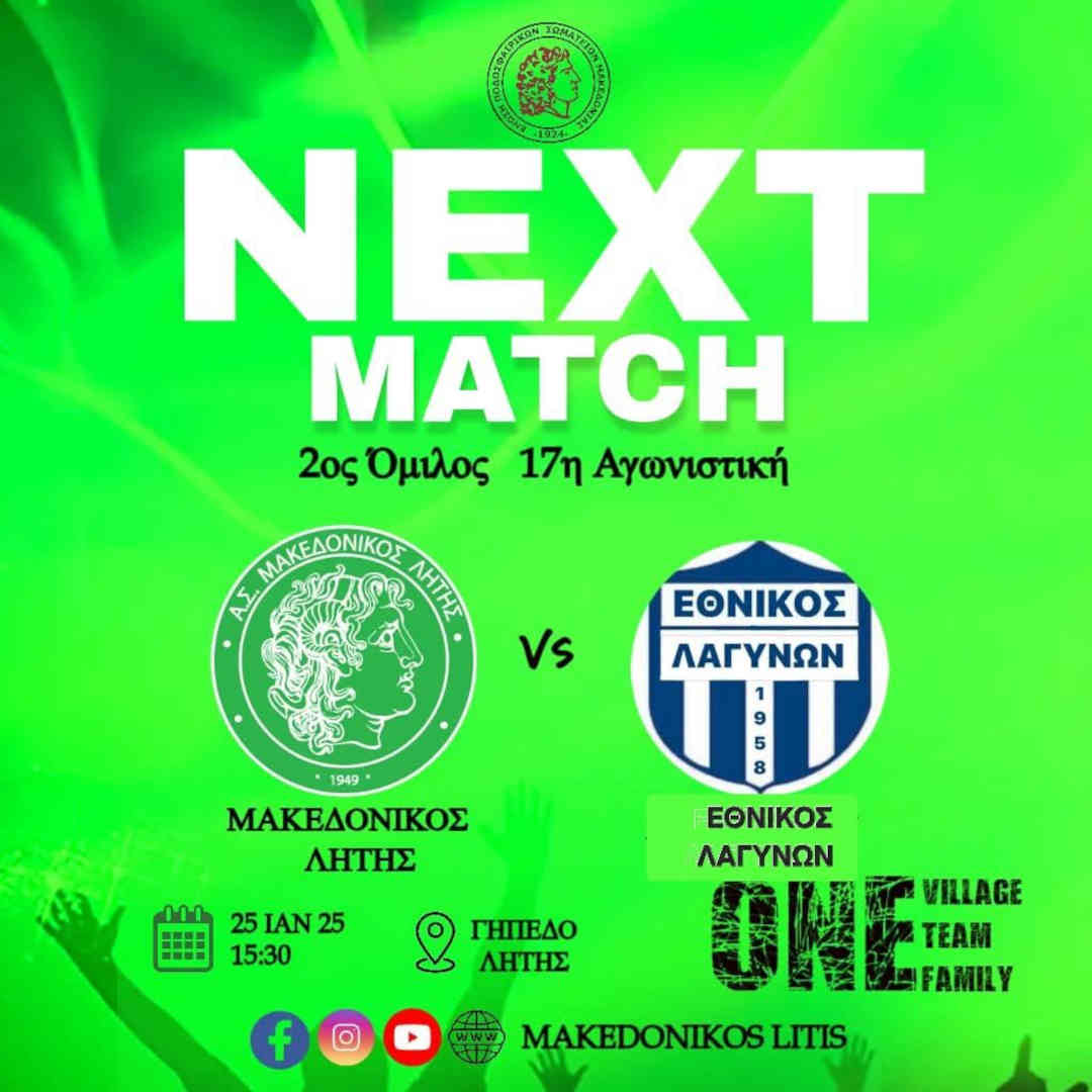 Το Σάββατο 25/1, η ομάδα μας φιλοξενεί τον Εθνικό Λαγυνών για την 17η αγωνιστική του πρωταθλήματος