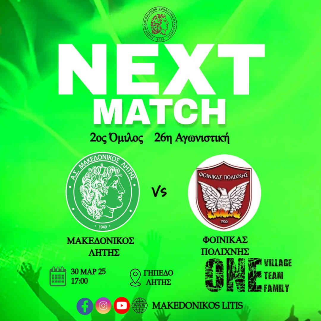 Την Κυριακή 30/3, η ομάδα μας φιλοξενεί τον Φοίνικα Πολίχνης για την 26η αγωνιστική του πρωταθλήματος