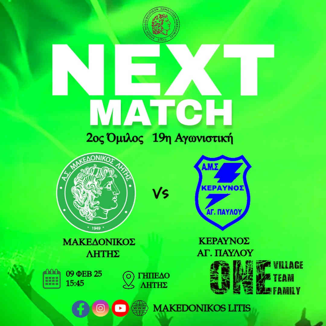 Την Κυριακή 9/2, η ομάδα μας φιλοξενεί τον Κεραυνό Αγίου Παύλου για την 19η αγωνιστική του πρωταθλήματος