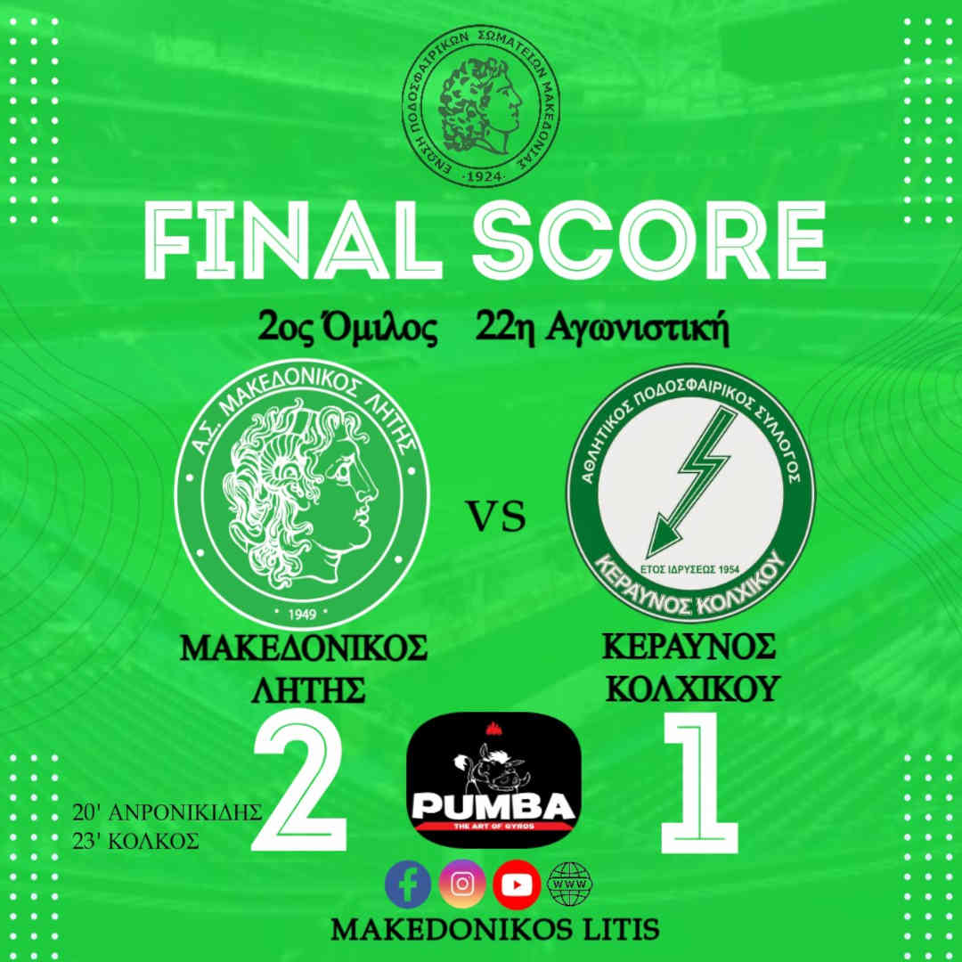 Μακεδονικός Λητής - Κεραυνός ΚολχικούΓκολ και φάσεις από τον αγώνα της ομάδας μας απέναντι στον Κεραυνό Κολχικού για την 22η αγωνιστική (7η β΄ γύρου) του πρωταθλήματος.
