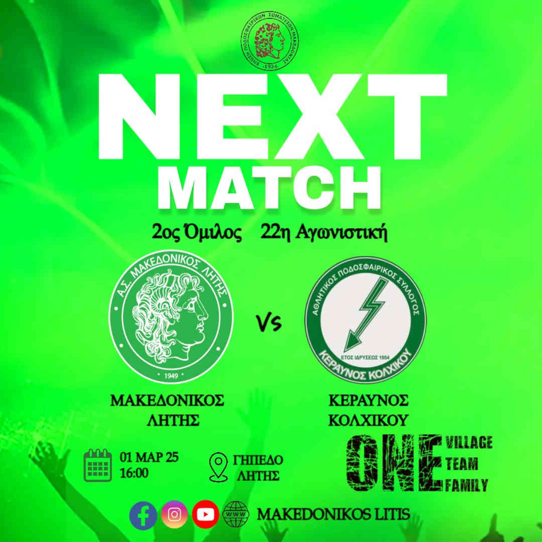 Το Σάββατο 1/3, η ομάδα μας φιλοξενεί τον Κεραυνό Κολχικού για την 22η αγωνιστική του πρωταθλήματος