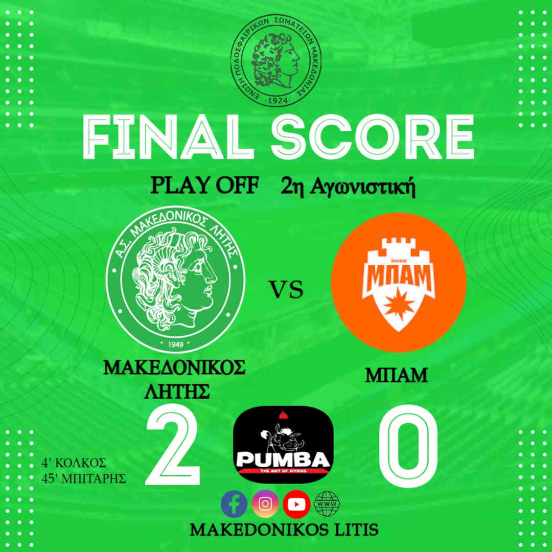 Επιβλητική νίκη με 2-0 για την ομάδα μας επί της ΜΠΑΜ και το πρώτο βήμα για την άνοδο στην Α1 με σκόρερ Κώστα Κόλκο και Κώστα Μπιτάρη.