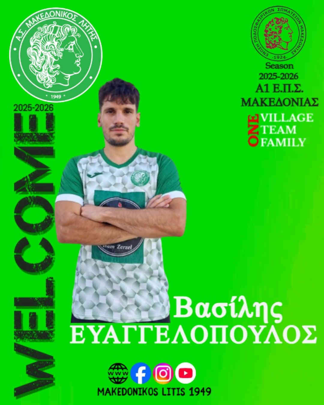 Βασίλη καλώς ήρθες στην οικογένεια του Μακεδονικού και σου ευχόμαστε μια σεζόν χωρίς τραυματισμούς και γεμάτη νίκες.