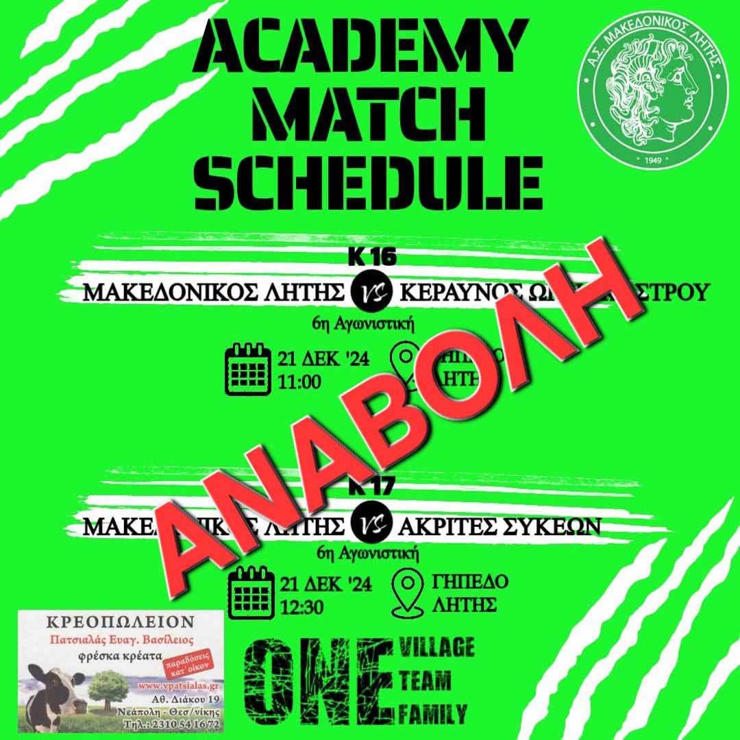 Περισσότερα: ⚽️ Κ17 Μακεδονικός Λητής - Ακρίτες Συκεών, Κ16 Μακεδονικός Λητής - Κεραυνός Ωραιοκάστρου (αναβολή...