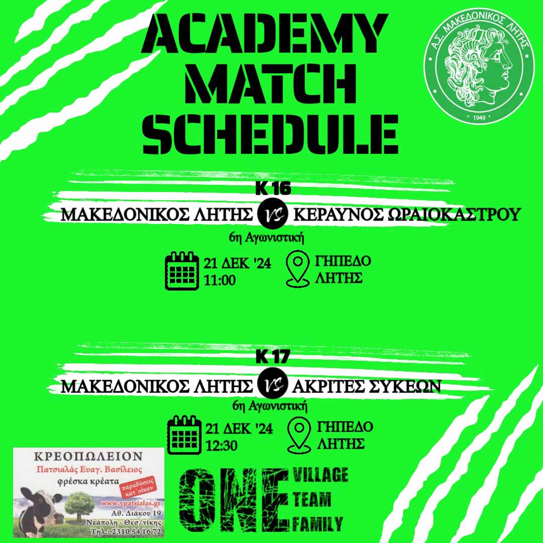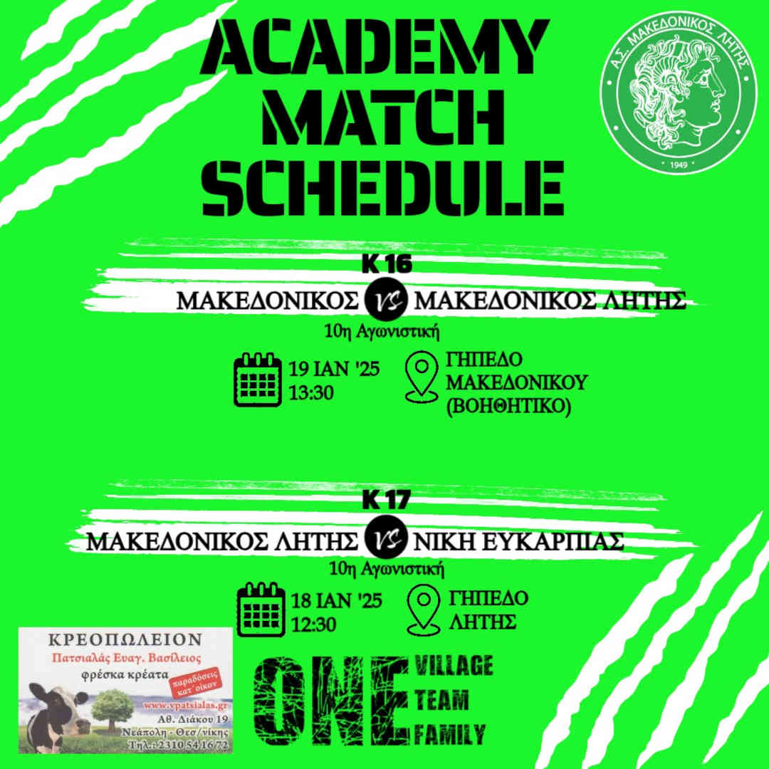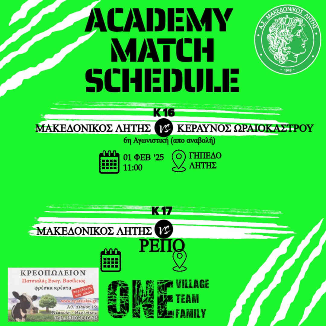 Περισσότερα: ⚽️ Κ17 Μακεδονικός Λητής - Ακρίτες Συκεών, Κ16 Μακεδονικός Λητής - Κεραυνός Ωραιοκάστρου